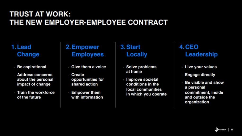 To support, here are Edelman’s recommendations for action that needs to be taken internally:
